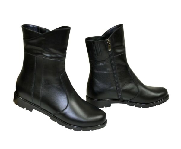 Жіночі черевики на низькому ходу виготовлені з натуральної шкіри чорного кольору.