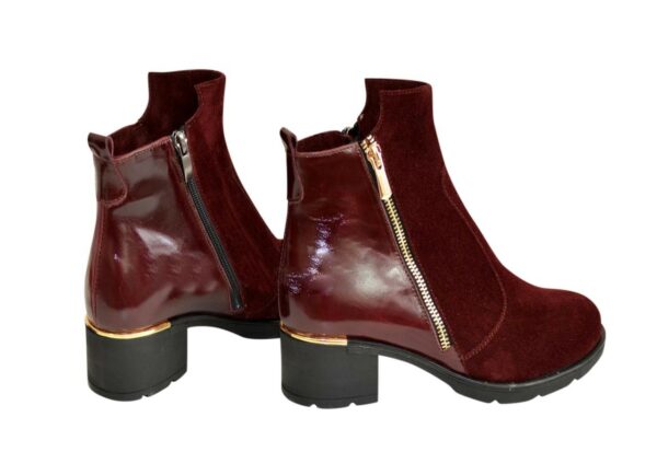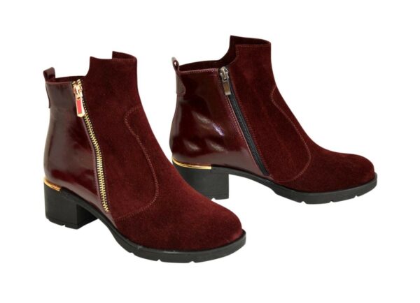 Класичні жіночі черевики на невисокому підборі, виготовлені з натуральної замші та шкіри бордового кольору. Дуже зручні, ідеально сидять на ніжці.