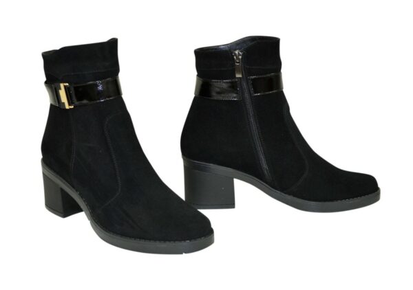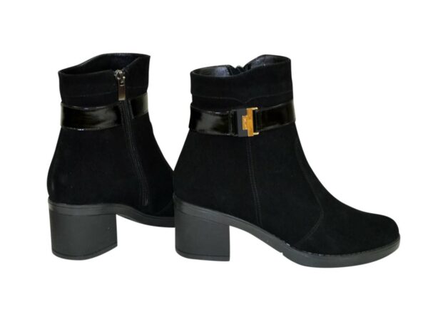 Класичні жіночі черевики на зручному невисокому підборі, виготовлені із натуральної шкіряної замші чорного кольору. Дуже зручні, ідеально сидять на ніжці.