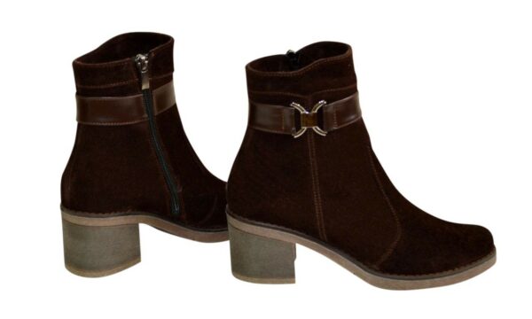 Класичні жіночі черевики на зручному невисокому підборі, виготовлені із натуральної шкіряної замші коричневого кольору. Дуже зручні, ідеально сидять на ніжці.