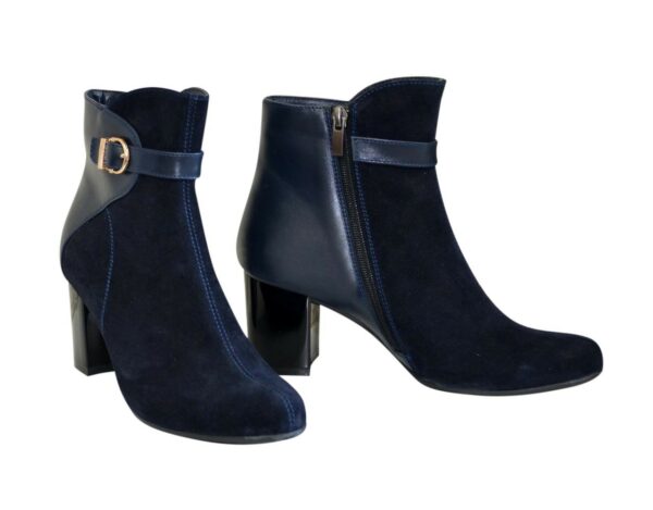 Жіночі комбіновані черевики в класичному стилі із натуральної замші+шкіра синього кольору на широкому стійкому підборі. Висота з урахуванням каблука – 20 см. Висота до аблука – 6,5 см Обхват – 26-27 см. Утеплювач – за бажанням замовника БАЙКА, хутро ПОЛУШЕРСТЬ 70%. Повномірні, відповідають стандартній сітці розміру. У нас працює послуга "індивідуальне виготовлення". Можливий відшив у шкірі, замші різних кольорів. Класичні черевики мають унікальну форму, тому чудово поєднуються з різними стилями в одязі. ТМ zlata-studio знайдемо підхід до кожного клієнта.