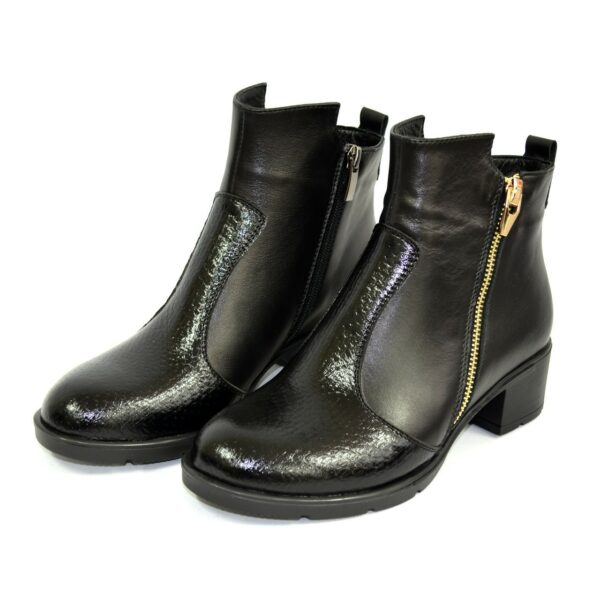 Класичні жіночі черевики на невисокому підборі, виготовлені з натуральної шкіри чорного кольору та шкіри імітація "рептилії". Дуже зручні, ідеально сидять на ніжці.