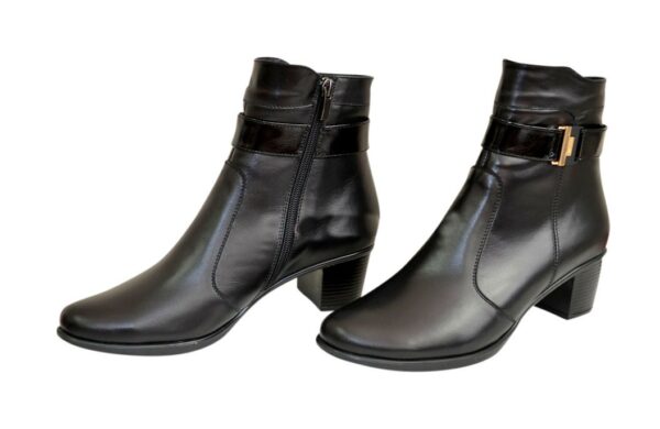 Класичні жіночі черевики на зручному невисокому підборі, виготовлені із натуральної шкіри чорного кольору. Дуже зручні, ідеально сидять на ніжці.