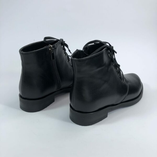 Класичні жіночі черевики на низькому ходу з маленьким каблучком, виготовлені із натуральної шкіри чорного кольору. З блискавкою та шнурівкою завдяки якій регулюється підйом. Дуже зручні, ідеально сидять на ніжці.