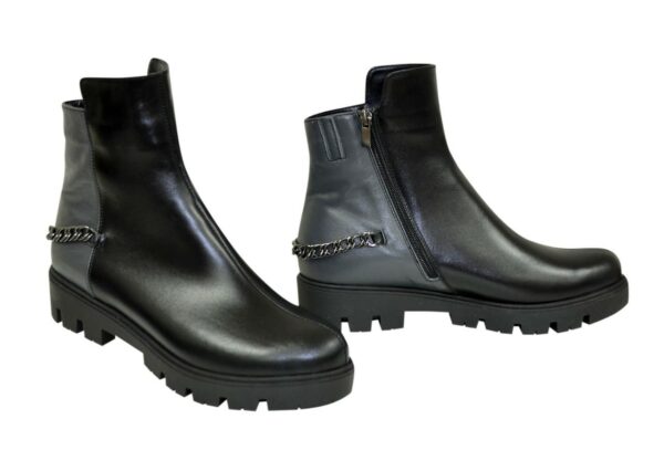 Стильні класичні жіночі черевики на невисокому підборі, виготовлені з натуральної шкіри чорного та сірого кольору. Дуже зручні, ідеально сидять на ніжці.