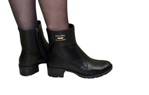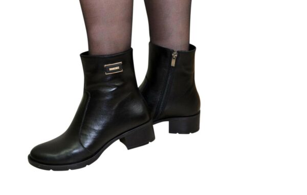 Класичні жіночі черевики на зручному невисокому підборі, виготовлені із натуральної шкіри чорного кольору. Декоровані фурнітурою. Дуже зручні, ідеально сидять на ніжці.