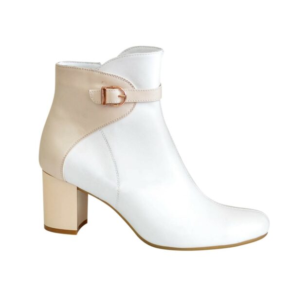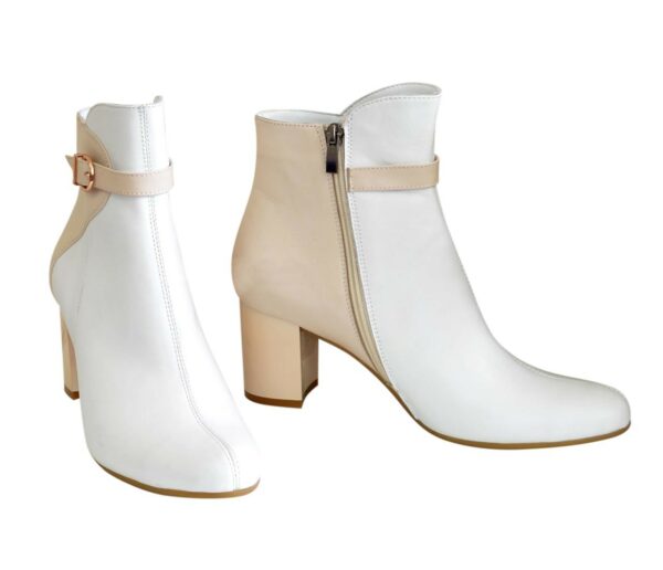 Жіночі комбіновані черевики у класичному стилі з натуральної шкіри білого та бежевого кольору на широкому стійкому підборі. Висота з урахуванням каблука – 20 см. Висота до аблука – 6,5 см Обхват – 26-27 см. Утеплювач – за бажанням замовника БАЙКА, хутро ПОЛУШЕРСТЬ 70%. Повномірні, відповідають стандартній сітці розміру. У нас працює послуга "індивідуальне виготовлення". Можливий відшив у шкірі, замші різних кольорів. Класичні черевики мають унікальну форму, тому чудово поєднуються з різними стилями в одязі. ТМ zlata-studio знайдемо підхід до кожного клієнта.