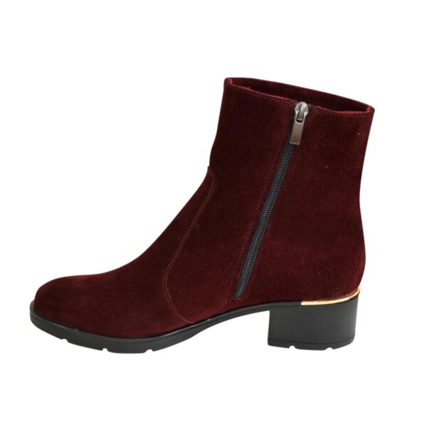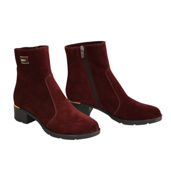 Класичні жіночі черевики на зручному невисокому підборі, виготовлені із натуральної замшевої шкіри бордового кольору. Декоровані фурнітурою. Дуже зручні, ідеально сидять на ніжці.