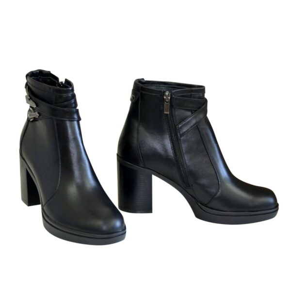 Модні стильні жіночі черевики на стійких підборах, виготовлені з натуральної шкіри чорного кольору. Декоровані ремінцями. Дуже зручні, ідеально сидять на ніжці – підкреслять вашу індивідуальність.