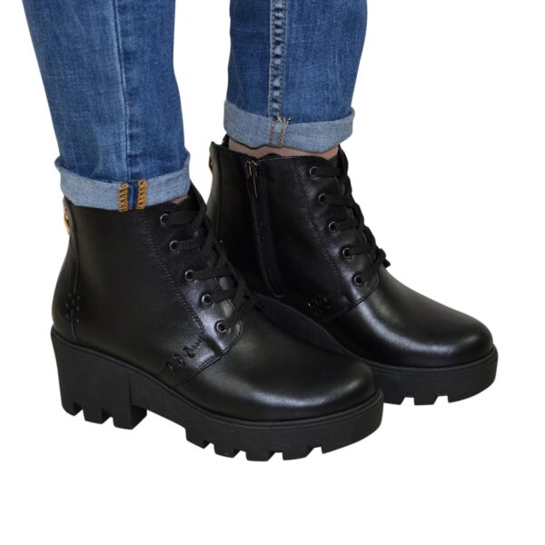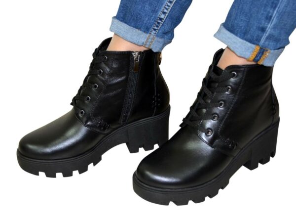 Модні жіночі черевики на шнурівці, виготовлені з натуральної шкіри чорного кольору. Блискавка робоча – за допомогою шнурівки регулюється підйом. Незамінні на кожен день, дуже зручні, ідеально сидять на ніжці – підкреслять вашу індивідуальність.