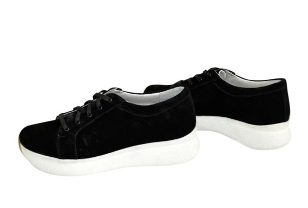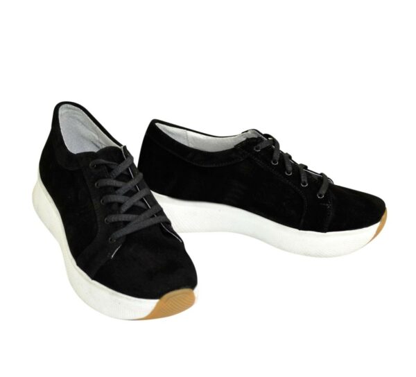 Стильні, комфортні кросівки-кеди, виготовлені з натуральної замші чорного кольору. З м'яким кантом та м'якою мовою. Чудово сидять на ніжці. Повномірні, відповідають стандартній сітці розміру. Розраховані на різну повноту ноги завдяки шнурівці. Можливий відшив у шкірі, замші різних кольорів.