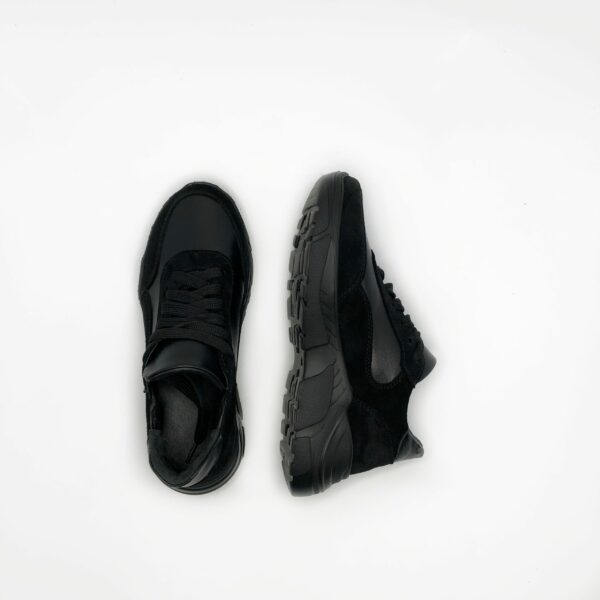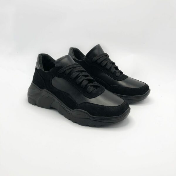 Молодіжні стильні кросівки з натуральної шкіри та замші чорного кольору, на полегшеній підошві. Виготовляються виключно із натуральних матеріалів. Повномірні відповідають стандартній сітці розміру. Можливий відшив у шкірі та замші різних кольорів ― враховуємо будь-які побажання замовника