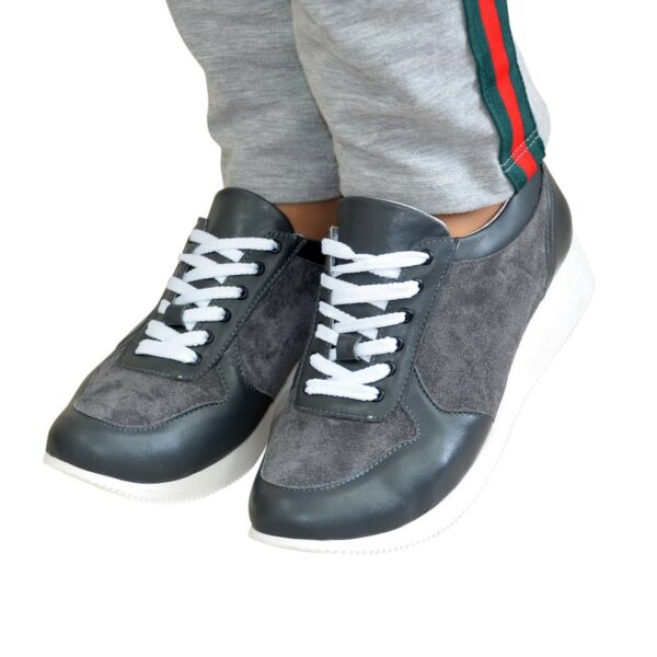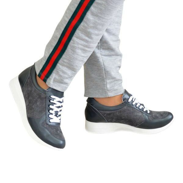 Стильні, комфортні кросівки виготовлені з натуральної шкіри та замші сірого кольору. З м'яким кантом та м'якою мовою. Чудово сидять на ніжці. Повномірні, відповідають стандартній сітці розміру. Розраховані на різну повноту ноги завдяки шнурівці. Можливий відшив у шкірі, замші різних кольорів.