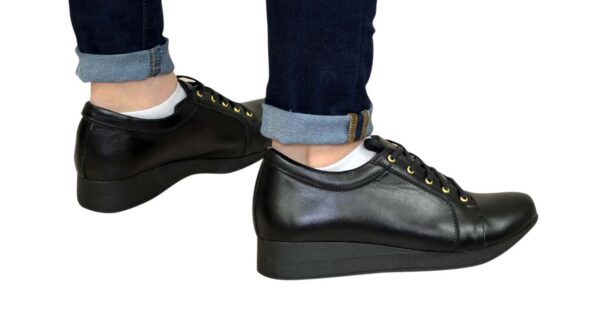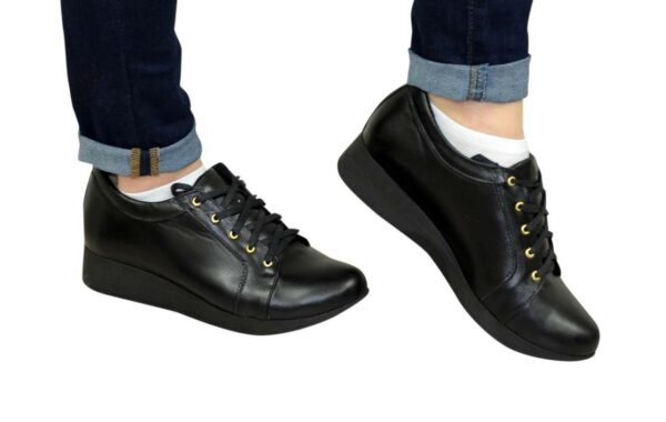 М'які, комфортні кросівки виготовлені із натуральної шкіри чорного кольору. З м'яким кантом та м'якою мовою. Чудово сидять на ніжці. Повномірні, відповідають стандартній сітці розміру. Розраховані на різну повноту ноги завдяки шнурівці. Можливий відшив у шкірі, замші різних кольорів.