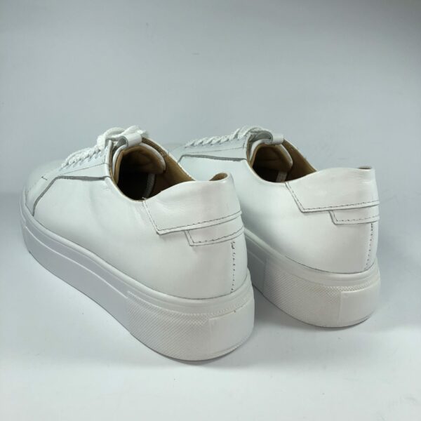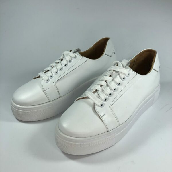 Стильні молодіжні кросівки з натуральної шкіри білого кольору, на полегшеній підошві. Виготовляються виключно із натуральних матеріалів. Повномірні відповідають стандартній сітці розміру. Можливий відшив у шкірі та замші різних кольорів ― враховуємо будь-які побажання замовника