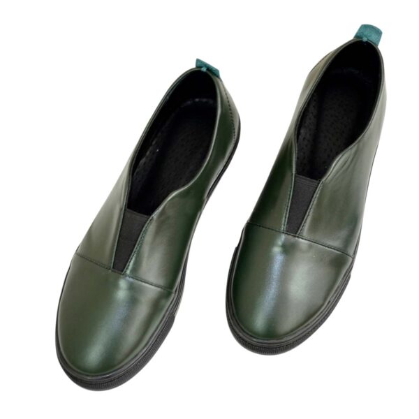 Полегшені кеди акуратно виглядають на ніжці! Виготовлені із натуральної шкіри зеленого кольору. Відповідають стандартній розмірній сітці. Розраховані на різну повноту ноги завдяки гумці. Можливий відшив у шкірі, замші різних кольорів.