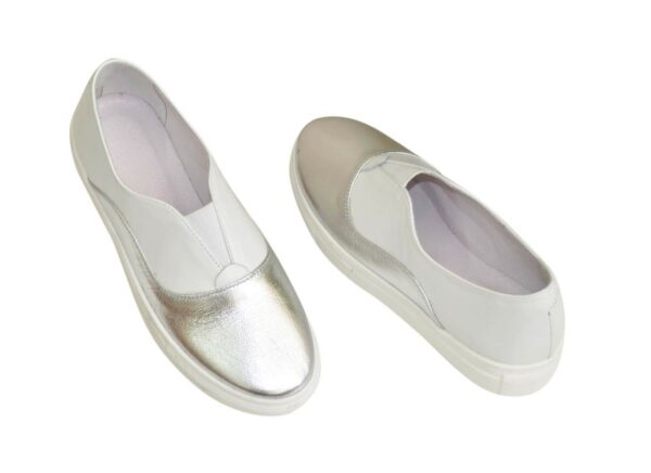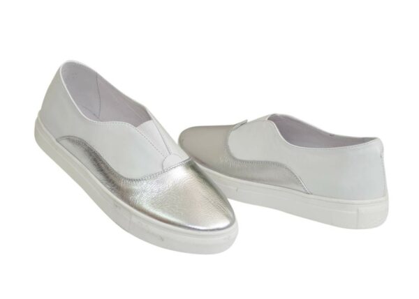 Полегшені кеди-мокасини акуратно виглядають на ніжці! Виготовлені з натуральної шкіри білого та срібного кольору. Відповідають стандартній розмірній сітці. Розраховані на різну повноту ноги завдяки гумці. Можливий відшив у шкірі, замші різних кольорів.