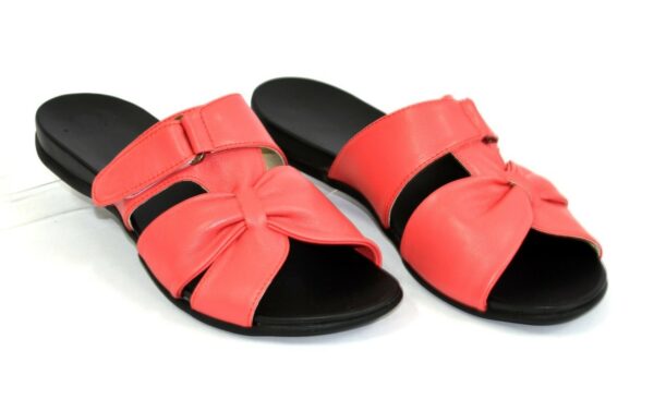 Зручні шльопанці на легкій поліуретановій підошві з натуральної шкіри коралового кольору, повномірні відповідають стандартній розмірній сітці. Підйом регулюється липучкою, підійде на повну ногу. Можливий відшив у шкірі, замші різних кольорів.