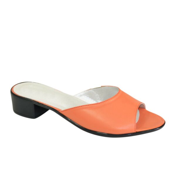 Елегантні сабо з натуральної шкіри коралового кольору, на полегшеній поліуретановій підошві з каблуком 3.5см. з гумкою, повномірні відповідають стандартній сітці розміру. Можливий відшив у шкірі, замші різних кольорів.