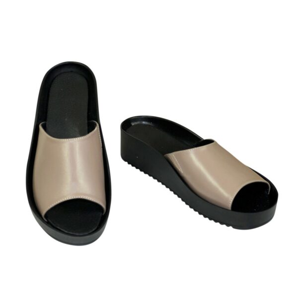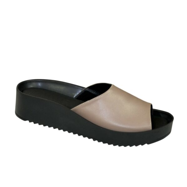 Зручні шльопання на легкій поліуретановій підошві, з натуральної шкіри кольору візон, з гумкою відповідають стандартній сітці розмірної. На вузьку та середню ногу. Можливий відшив у шкірі, замші різних кольорів.