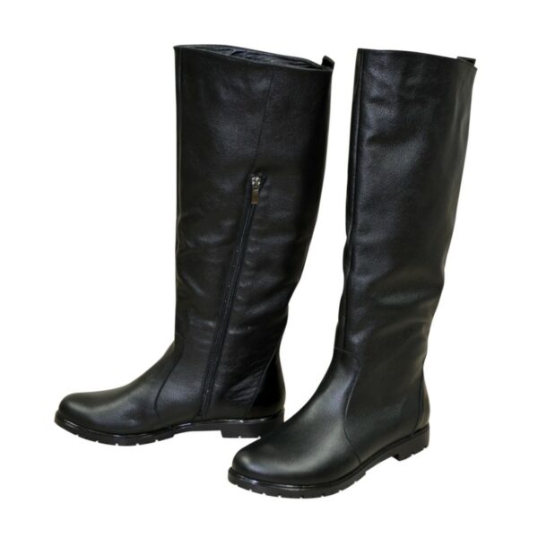 Жіночі чоботи труби із натуральної шкіри чорного кольору. На потовщеній підошві. Дуже зручні. Обсяг гомілки можна замовити від 35 см до 40 см для будь-якого розміру.