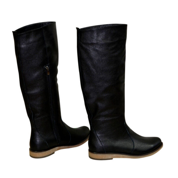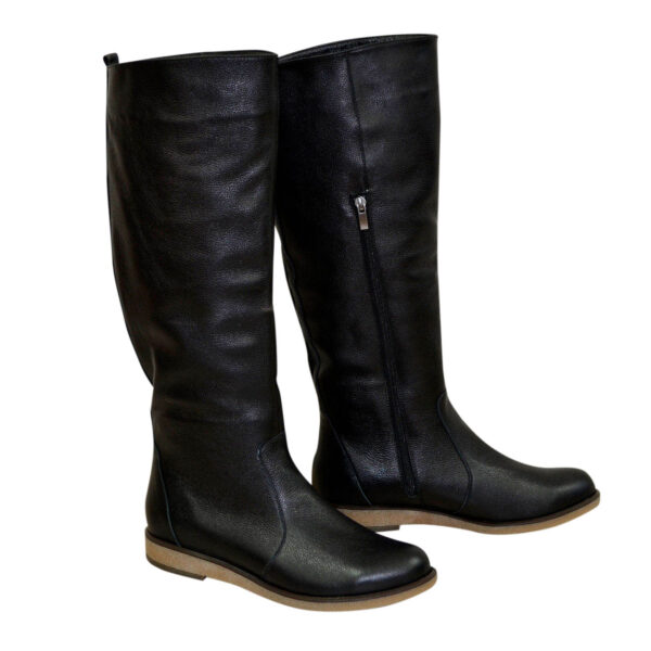 Жіночі чоботи труби із натуральної шкіри чорного кольору. На суцільній потовщеній підошві. Дуже зручні. Обсяг гомілки можна замовити від 35 см до 40 см для будь-якого розміру.