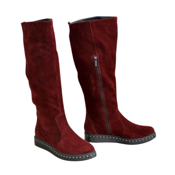 Жіночі чоботи труби із натуральної замші бордового кольору. На суцільній потовщеній підошві. Дуже зручні. Обсяг гомілки можна замовити від 35 см до 40 см для будь-якого розміру.