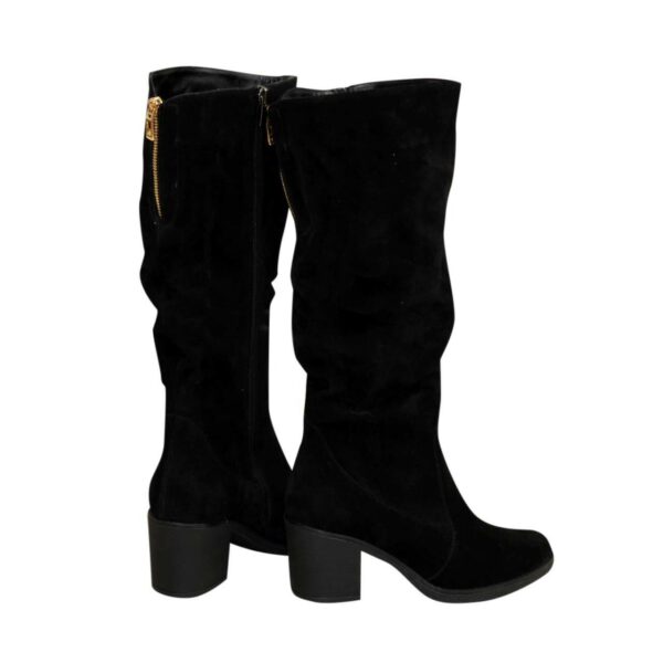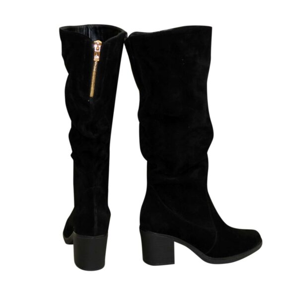 Стильні жіночі чоботи із натуральної замші кольору, з гумкою у верхній частині чобота. На потовщеній підошві. Обсяг гомілки можна замовити від 35 см до 40 см для будь-якого розміру.