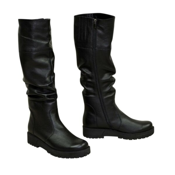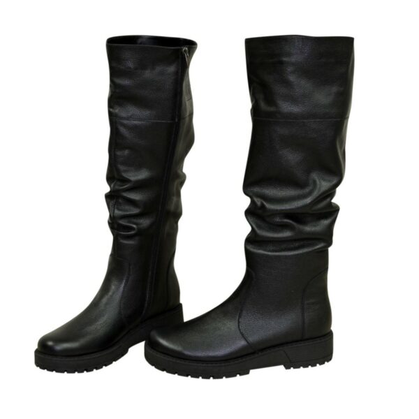 Стильні чоботи жіночі з натуральної шкіри чорного кольору з гумкою верхньої частини чобота, на потовщеній підошві.