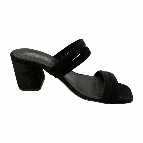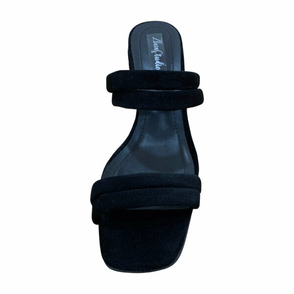 Молодіжні жіночі шльопання на не високому стійкому обтягнутому замші каблуці 6.5 см. Виконані з натуральної замші чорного кольору. Ручної роботи з використанням виключно натуральних матеріалів високої якості. Відповідають стандартній розмірній сітці. Розраховані на стандартну повноту стегна. Можливий відшив у шкірі, замші різних кольорів.