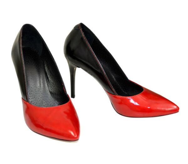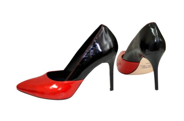 Класичні туфлі-човники на високій шпильці 9.5 см. Виконані з натуральної лакової шкіри червоного та чорного кольору. Ручної роботи з використанням виключно натуральних матеріалів високої якості. Відповідають стандартній розмірній сітці. Розраховані на стандартну повноту стегна. Можливий відшив у шкірі, замші різних кольорів.