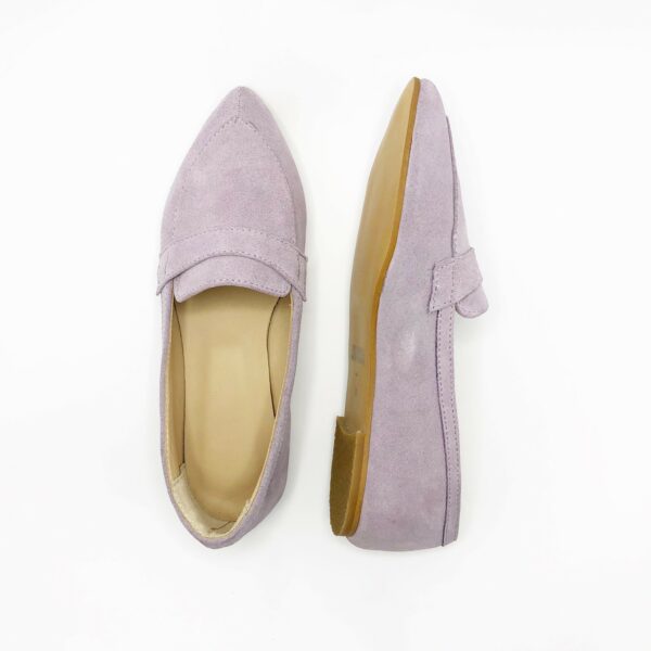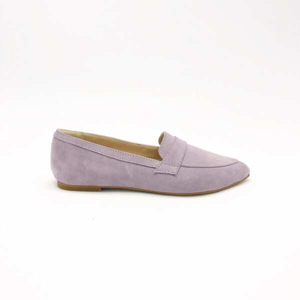 Жіночі класичні мюлі мокасини з натуральної замші колір лаванда. На полегшеній підошві виготовляються виключно з натуральних матеріалів. Повномірні відповідають стандартній сітці розміру. Можливий відшив у шкірі та замші різних кольорів ― враховуємо будь-які побажання замовника