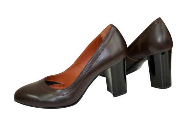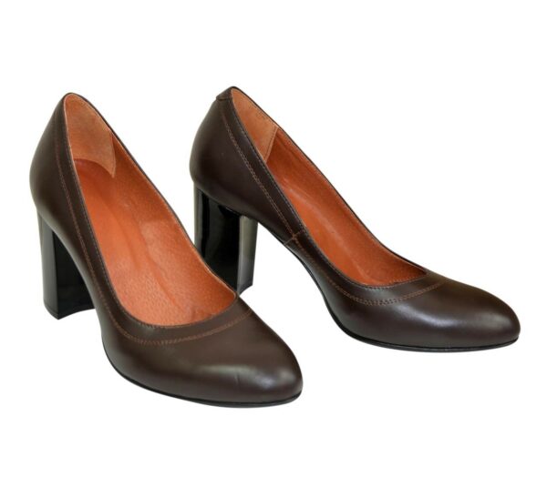 Жіночі туфлі із натуральної шкіри коричневого кольору. Підошва блок, каблук широкий, зручний, стійкий. Висота каблука 9,5 см. Зручні, практичні, добре виглядають на нозі. Пару по праву можна назвати універсальною та поєднаною з будь-яким хітом вашого весняно-літнього гардеробу. Повномірні, відповідають стандартній сітці розміру. Можливий відшив у шкірі, замші різних кольорів. Також у нас працює послуга «індивідуальне виготовлення». За допомогою цієї послуги Ви можете створити маленьку колекцію, використовуючи свої улюблені кольори. ТМ zlata-studio знайдемо підхід до кожного клієнта.