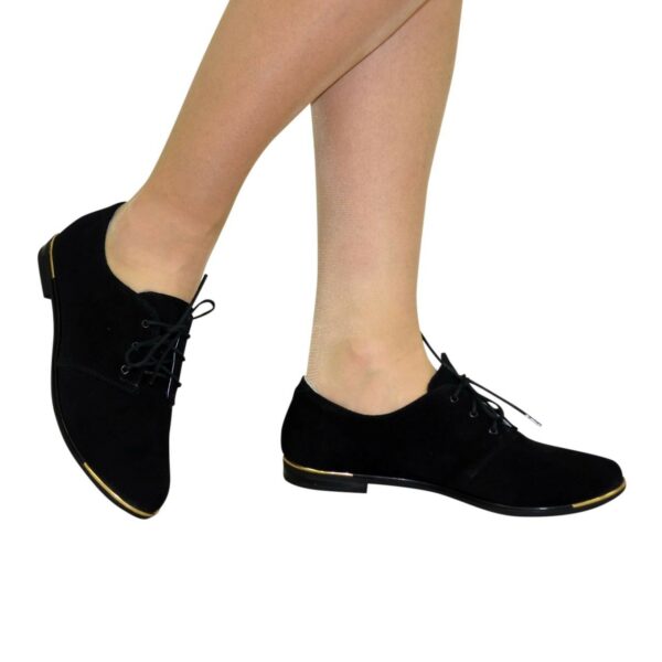 Повсякденні закриті жіночі туфлі, низький хід на міні каблучці з натуральної чорної замші. Завдяки шнурівці підійдуть на ніжку з підйомом. Ручної роботи з використанням виключно натуральних матеріалів високої якості. Повномірні, відповідають стандартній сітці розміру. Розраховані на стандартну повноту стегна. Можливий відшив у шкірі, замші різних кольорів.