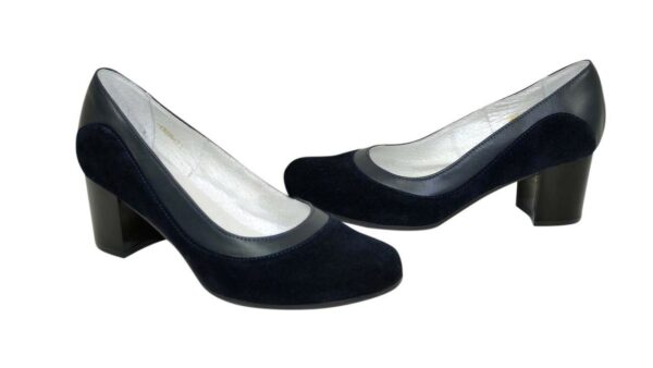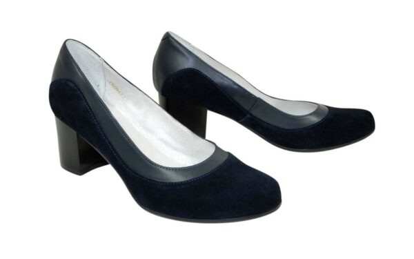 Жіночі туфлі із натуральної замші синього кольору комбіновані натуральною шкірою на широкому стійкому підборі (6см). Підошва лита. Зручні та практичні, добре виглядають на нозі. Пару по праву можна назвати універсальною та поєднаною з будь-яким хітом вашого весняно-літнього гардеробу. Повномірні, відповідають стандартній сітці розміру. Можливий відшив у шкірі, замші різних кольорів. Також у нас працює послуга «індивідуальне виготовлення». За допомогою цієї послуги Ви можете створити маленьку колекцію, використовуючи свої улюблені кольори. ТМ zlata-studio знайдемо підхід до кожного клієнта.