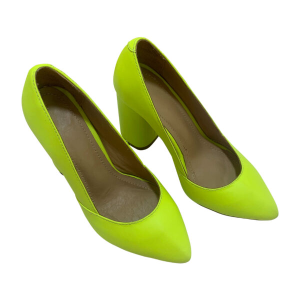 Вихідні класичні туфлі-човники на високому підборі обтягнутому жовтою шкірою. Виконані з натуральної жовтої шкіри. Висота каблука 9.5 см. Ручної роботи з використанням виключно натуральних матеріалів високої якості. Відповідають стандартній розмірній сітці. Розраховані на стандартну повноту стегна. Можливий відшив у шкірі, замші різних кольорів.