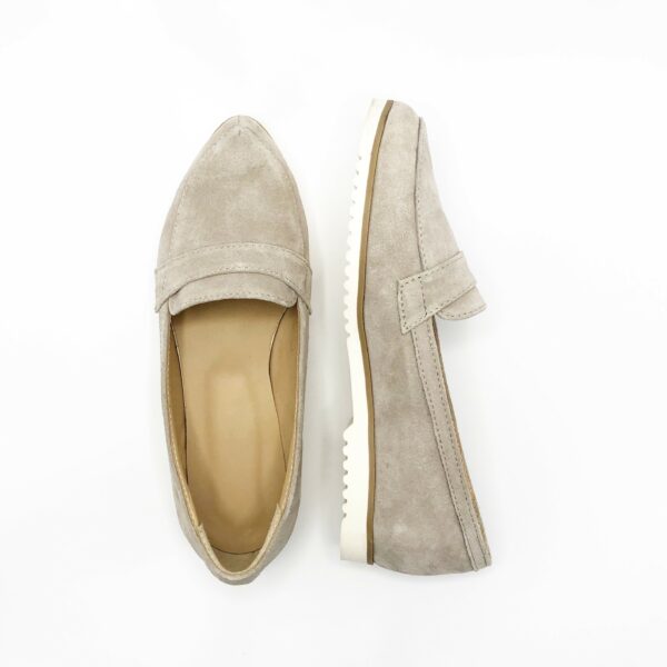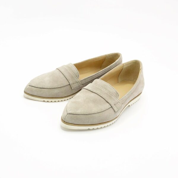 Жіночі класичні мокасини з натуральної замші бежевого кольору. На полегшеній підошві виготовляються виключно з натуральних матеріалів Повномірні відповідають стандартній сітці розміру. Можливий відшив у шкірі та замші різних кольорів ― враховуємо будь-які побажання замовника