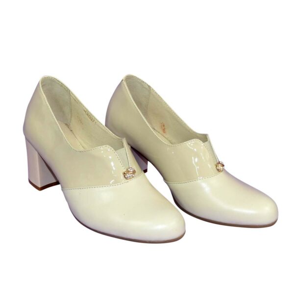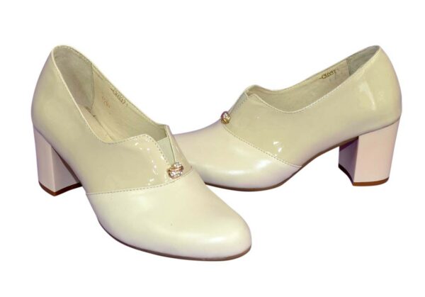 Шкіряні жіночі туфлі кольору беж комбіновані лаком на широкому стійкому підборі (6см). Декоровані фурнітурою. За рахунок гумки вшитої на підйомі – підійдуть на ніжку з підйомом Зручні та практичні, добре виглядають на нозі. Пару по праву можна назвати універсальною та поєднаною з будь-яким хітом вашого весняно-літнього гардеробу. Відповідають стандартній розмірній сітці. Можливий відшив у шкірі, замші різних кольорів. Також у нас працює послуга «індивідуальне виготовлення». За допомогою цієї послуги Ви можете створити маленьку колекцію, використовуючи свої улюблені кольори. ТМ zlata-studio знайдемо підхід до будь-якого клієнта.