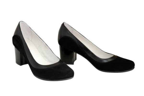Жіночі туфлі з натуральної замші благородного чорного кольору, комбіновані натуральною шкірою, на широкому стійкому підборі (6см). Підошва лита. Зручні та практичні, добре виглядають на нозі. Пару по праву можна назвати універсальною та поєднаною з будь-яким хітом вашого весняно-літнього гардеробу. Повномірні, відповідають стандартній сітці розміру. Можливий відшив у шкірі, замші різних кольорів. Також у нас працює послуга «індивідуальне виготовлення». За допомогою цієї послуги Ви можете створити маленьку колекцію, використовуючи свої улюблені кольори. ТМ zlata-studio знайдемо підхід до кожного клієнта.