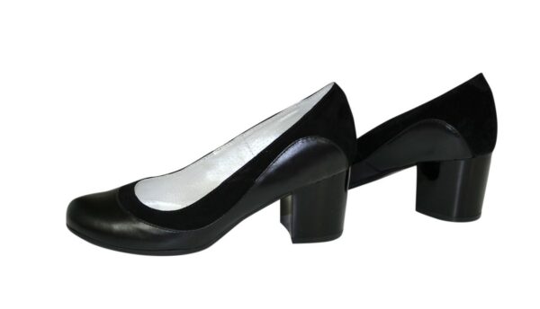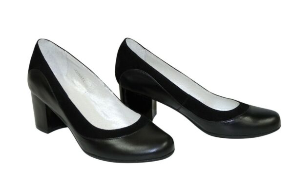 Жіночі туфлі з натуральної шкіри благородного чорного кольору, комбіновані натуральною замшею, на широкому стійкому підборі (6см). Підошва лита. Зручні та практичні, добре виглядають на нозі. Пару по праву можна назвати універсальною та поєднаною з будь-яким хітом вашого весняно-літнього гардеробу. Повномірні, відповідають стандартній сітці розміру. Можливий відшив у шкірі, замші різних кольорів. Також у нас працює послуга «індивідуальне виготовлення». За допомогою цієї послуги Ви можете створити маленьку колекцію, використовуючи свої улюблені кольори. ТМ zlata-studio знайдемо підхід до кожного клієнта.