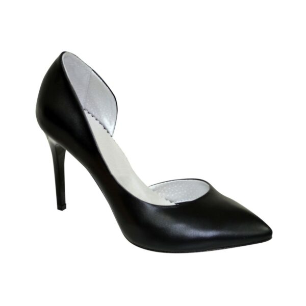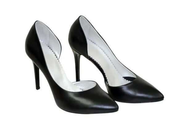 Класичні туфлі із загостреним носком на високій шпильці 9.5 см. Виконані з натуральної шкіри чорного кольору. Ручної роботи з використанням виключно натуральних матеріалів високої якості. Відповідають стандартній розмірній сітці. Розраховані на стандартну повноту стегна. Можливий відшив у шкірі, замші різних кольорів.