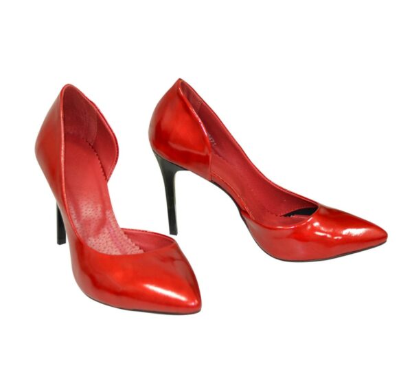 Класичні туфлі із загостреним носком на високій шпильці 9.5 см. Виконані з натуральної лакової шкіри червоного кольору. Ручної роботи з використанням виключно натуральних матеріалів високої якості. Відповідають стандартній розмірній сітці. Розраховані на стандартну повноту стегна. Можливий відшив у шкірі, замші різних кольорів.