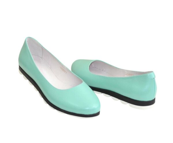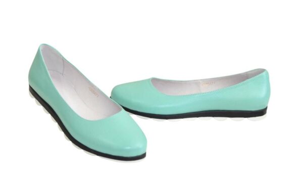 Жіночі туфлі-балетки із натуральної гладкої шкіри м'ятного кольору на низькому ходу. Легкі та зручні підійдуть для повсякденного носіння. Взуття такого плану підходить усім без винятку. Повномірні, відповідають стандартній сітці розміру. Можливий відшив у шкірі, замші різних кольорів. Зверніть увагу, що у нас працює послуга "індивідуальне виготовлення". За допомогою цієї послуги Ви можете створити маленьку колекцію, використовуючи свої улюблені кольори. ТМ zlata-studio знайдемо підхід до кожного клієнта.