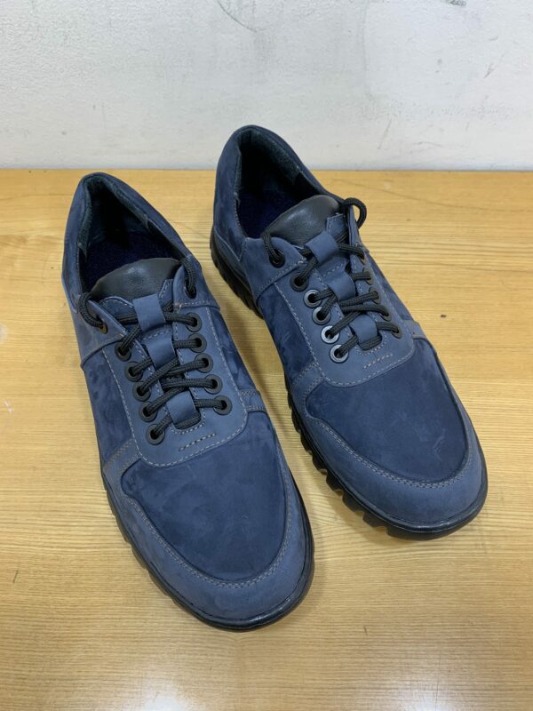 ТАКТИЧНІ ВІЙСЬКОВІ КРОСІВКИ СИНЬОГО КОЛЬОРУ КОМБІНОВАНІ ШКІРА “КРЕЙЗІ ХОРСТ” ТА “НУБУК”. ГОЛЮНКОВОСТОПНИЙ СУСТАВ ЗМІЦНЕНЬ ЛАТЕКСОМ, ПІДОШВА ПРОШИТА ВОЩЕНОЮ НИТКОЮ, ПІДКЛАДКА ТА УСІЛКИ МЕМБРАНУ.