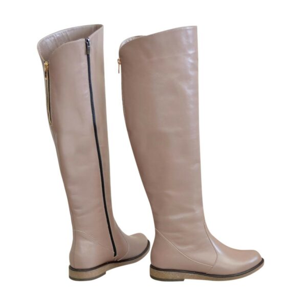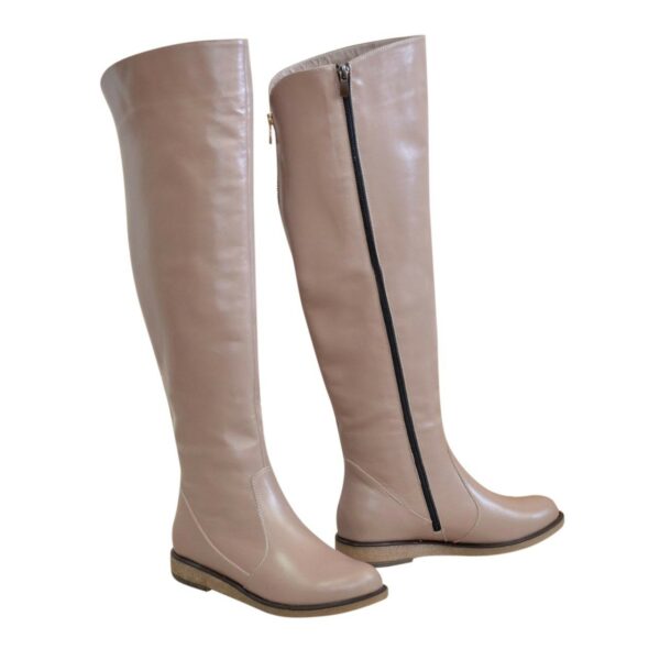 Стильные женские ботфорты из натуральной кожи, цвет визон с регулировочным клапаном в верхней части сапога, на утолщенной подошве.