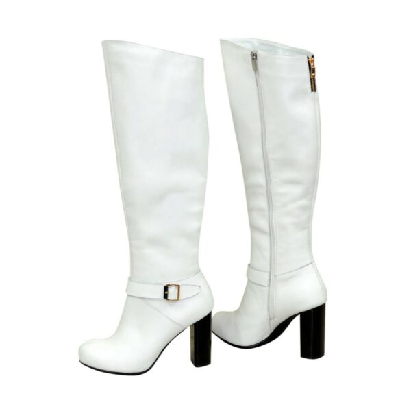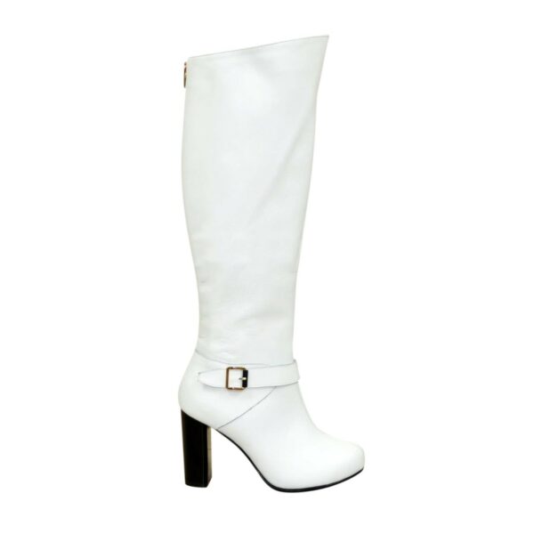 Стильные женские ботфорты из натуральной кожи белого цвета с высоким подбором.