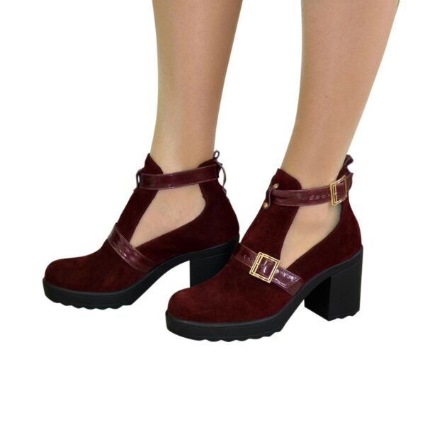 Стильные женские полуоткрытые ботильоны из натуральной замши и кожи бордового цвета, на широком стойком подборе 7.5 см. спереди 1.5 см. Благодаря ремешку регулируется обхват лодыжки. Ручная работа с использованием исключительно натуральных материалов высокого качества. Соответствуют стандартной размерной сетке. Рассчитаны на стандартную полноту бедра. Возможен отшив в коже, замши разных цветов.