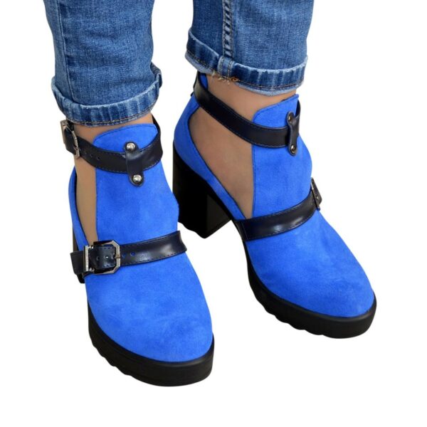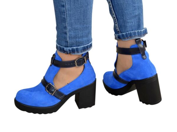 Стильные женские полуоткрытые ботильоны из натуральной замши цвет электрик, на широком стойком подборе 7.5 см. спереди 1.5 см. Благодаря ремешку регулируется обхват лодыжки. Ручная работа с использованием исключительно натуральных материалов высокого качества. Соответствуют стандартной размерной сетке. Рассчитаны на стандартную полноту бедра. Возможен отшив в коже, замши разных цветов.