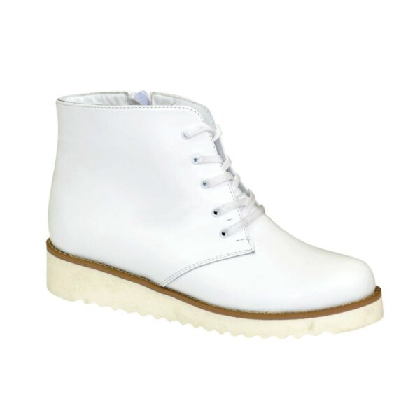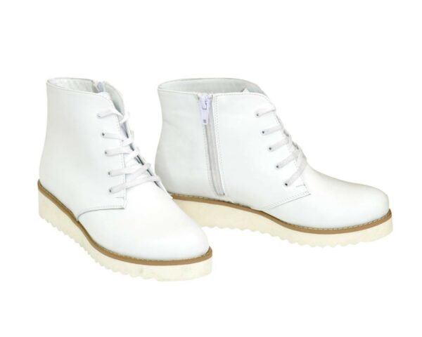 Классические женские ботинки на низком ходу изготовлены из натуральной кожи белого цвета. С молнией и шнуровкой, благодаря которой регулируется подъем. Очень удобные, идеально сидящие на ножке.
