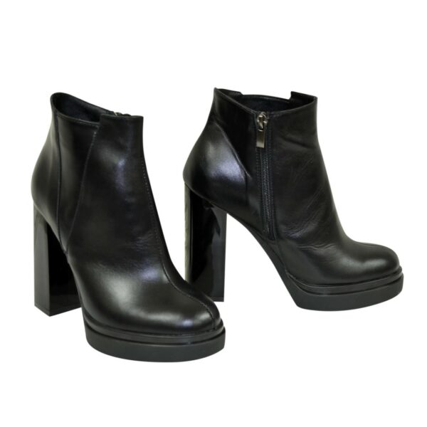 Стильные женские ботинки на высоком стойком каблуке, изготовлены натуральной кожи черного цвета. Очень удобные, идеально сидящие на ножке.